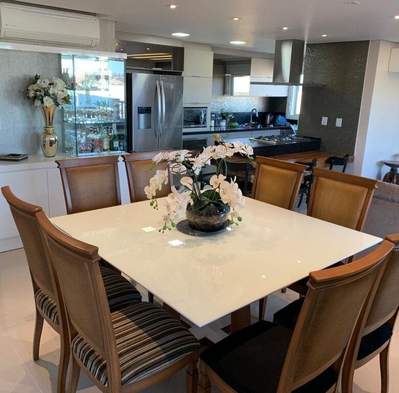 Bela cobertura, toda mobiliada com 903m2 de área total, amplo espaço com ambientes integrados e generosos, composto de 03 dormitórios sendo 01 suíte, sala estar/jantar ,cozinha, lavabo e banheiro.