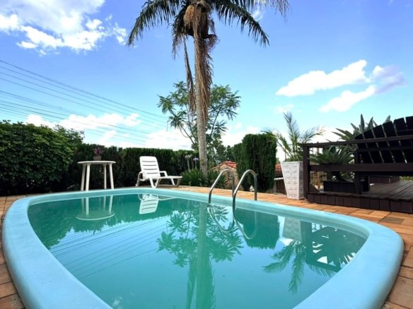 Bela casa semimobiliada c/pé direito duplo,  c/77m²,composta de 02 dormitórios s/01 suíte, sala de TV, cozinha c/ churrasqueira , sala de jantar, sala de estar área de serviço. Terreno todo murado e cercado.