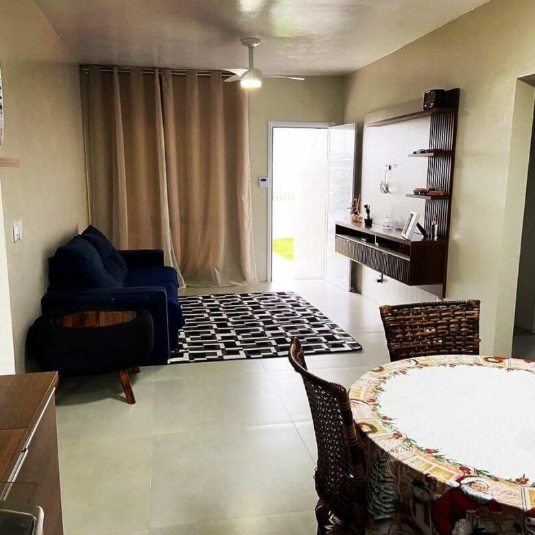 Bela casa,em laje de concreto com 137m²,composta de 03 dormitórios s/01 suíte,banheiro social,lavabo,sala e cozinha conjugadas,lavanderia,churrasqueira e gargem fechada.Terreno medindo 12×25=300m2 com pátio na frente e fundos,piscina e posição solar frente mar.