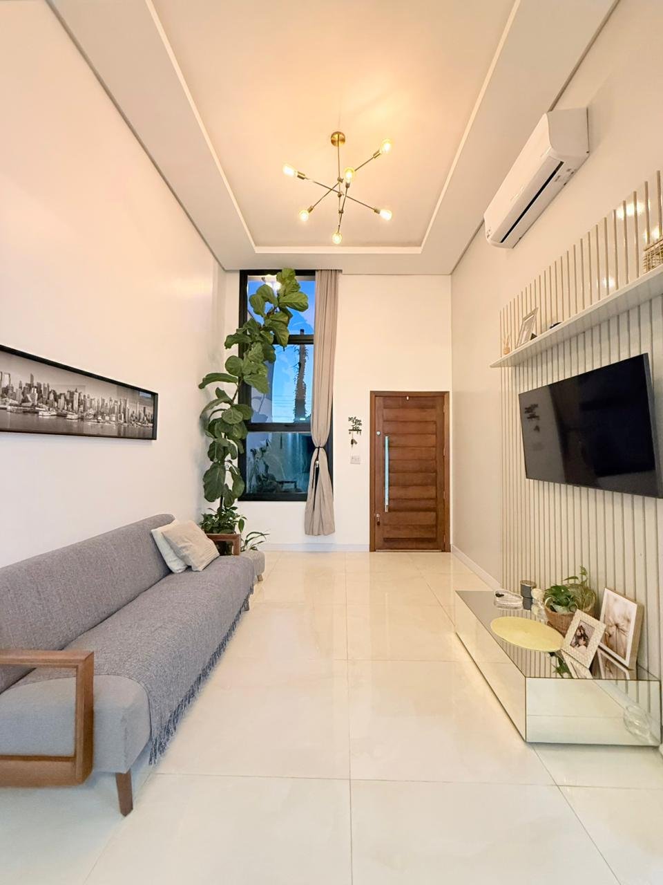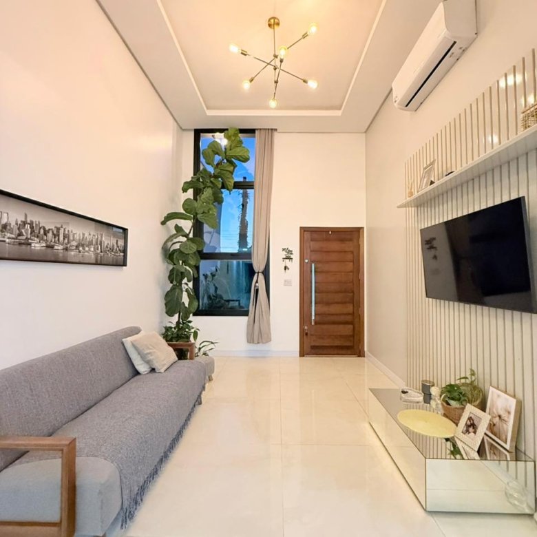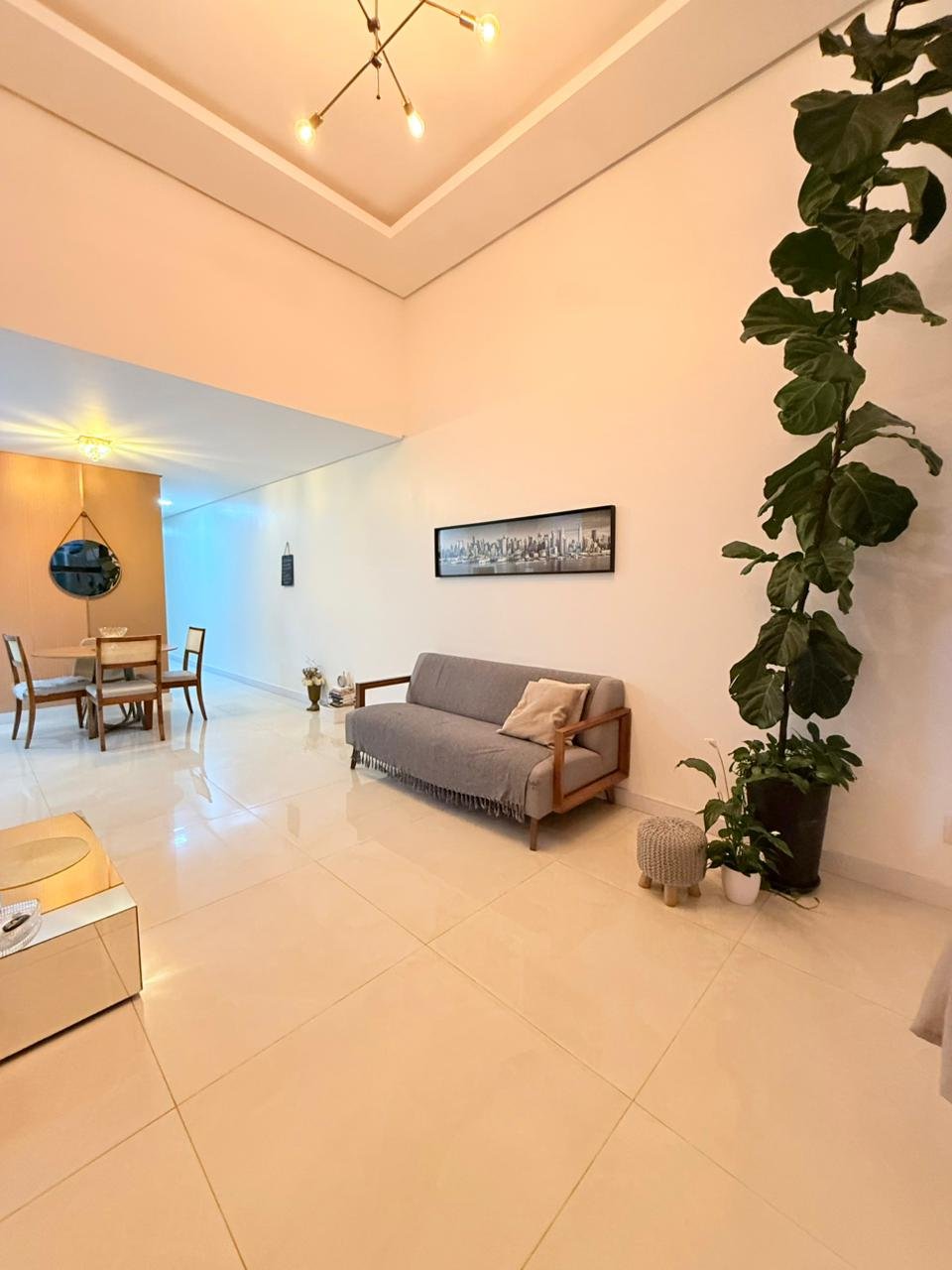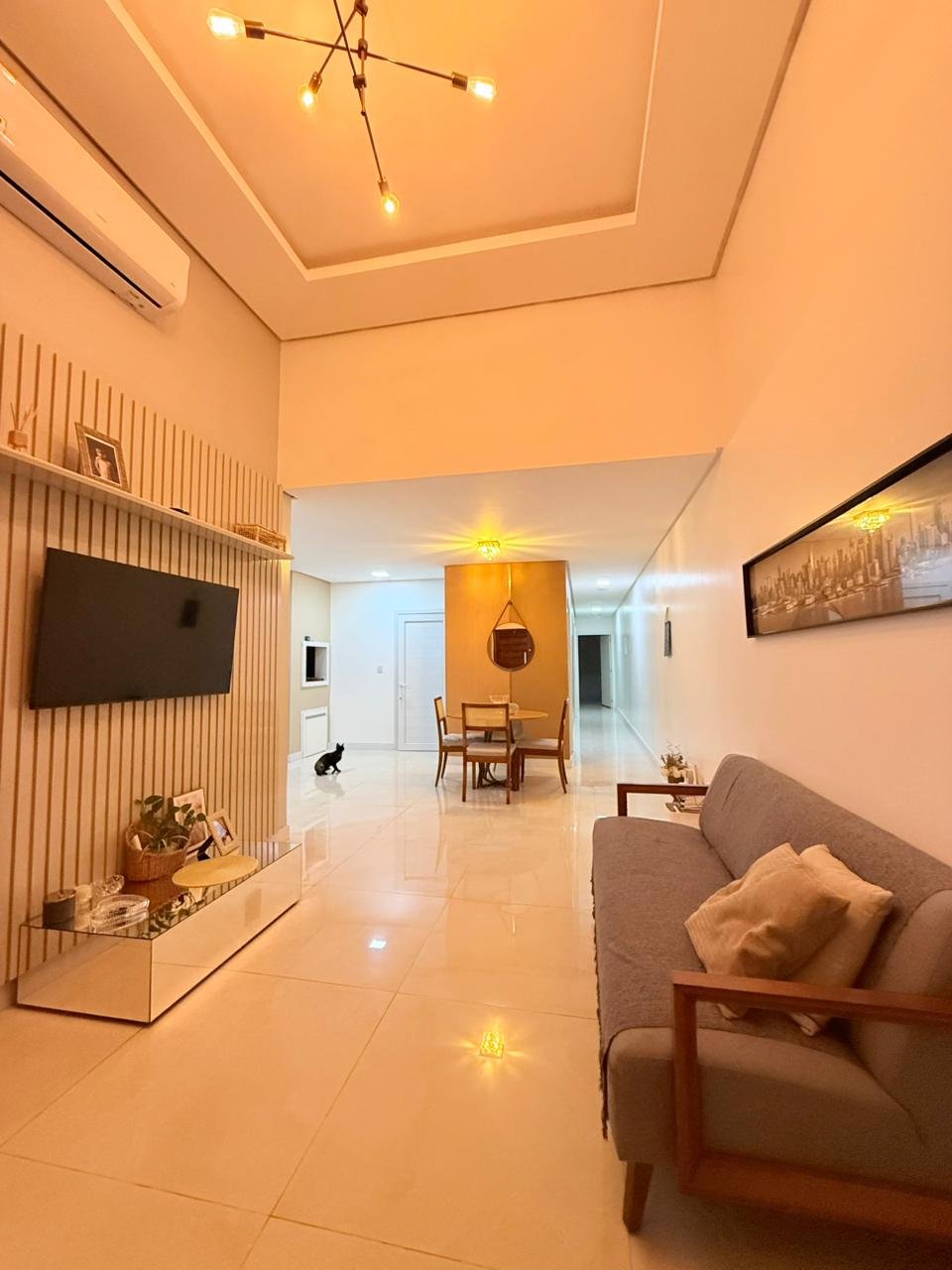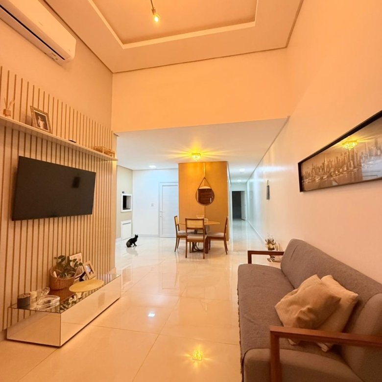 Essa casa encanta logo na entrada com pé direito duplo, trazendo sofisticação e muita amplitude. A área social é pensada pra viver bons momentos: sala para dois ambientes, iluminação natural incrível e um clima acolhedor em cada detalhe.