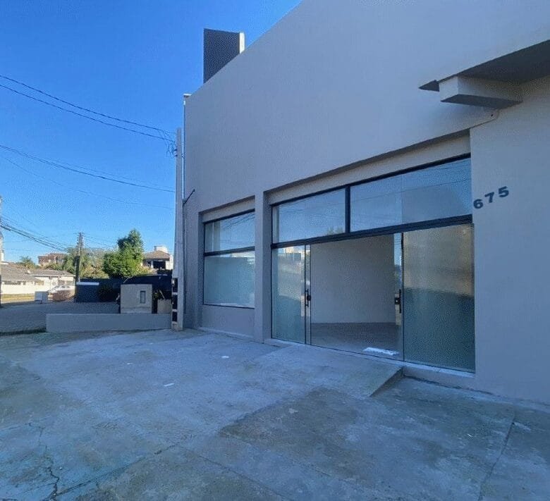 Sala comercial c/189,00m²,com vitrine de vidro,pé direito alto,piso cerâmico e dois banheiros.