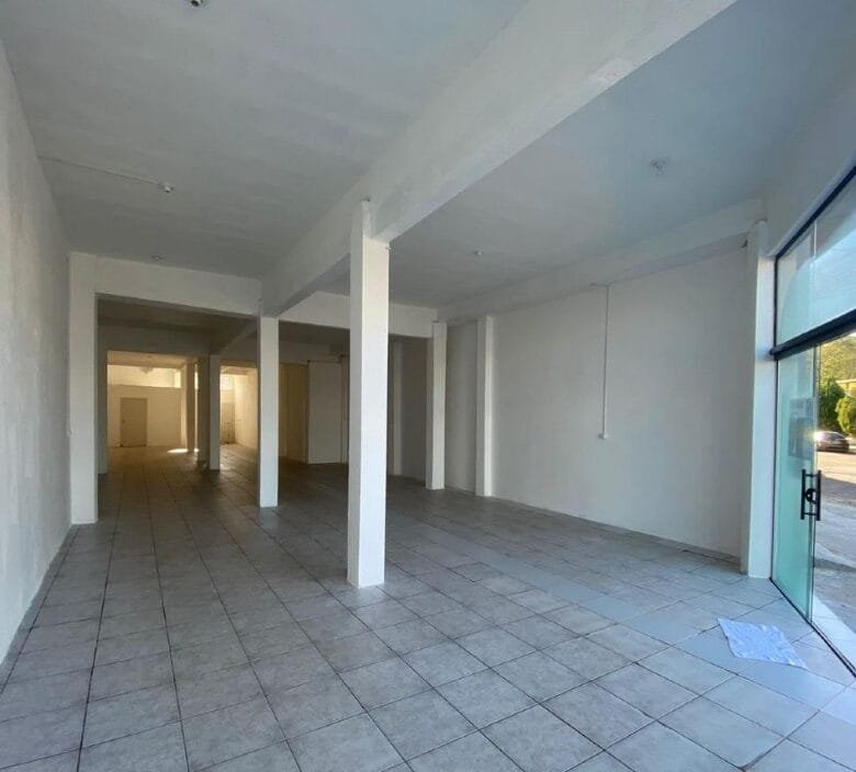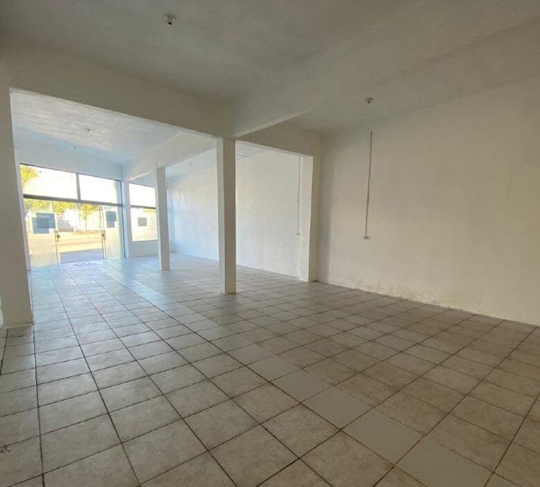 Sala comercial c/189,00m²,com vitrine de vidro,pé direito alto,piso cerâmico e dois banheiros.